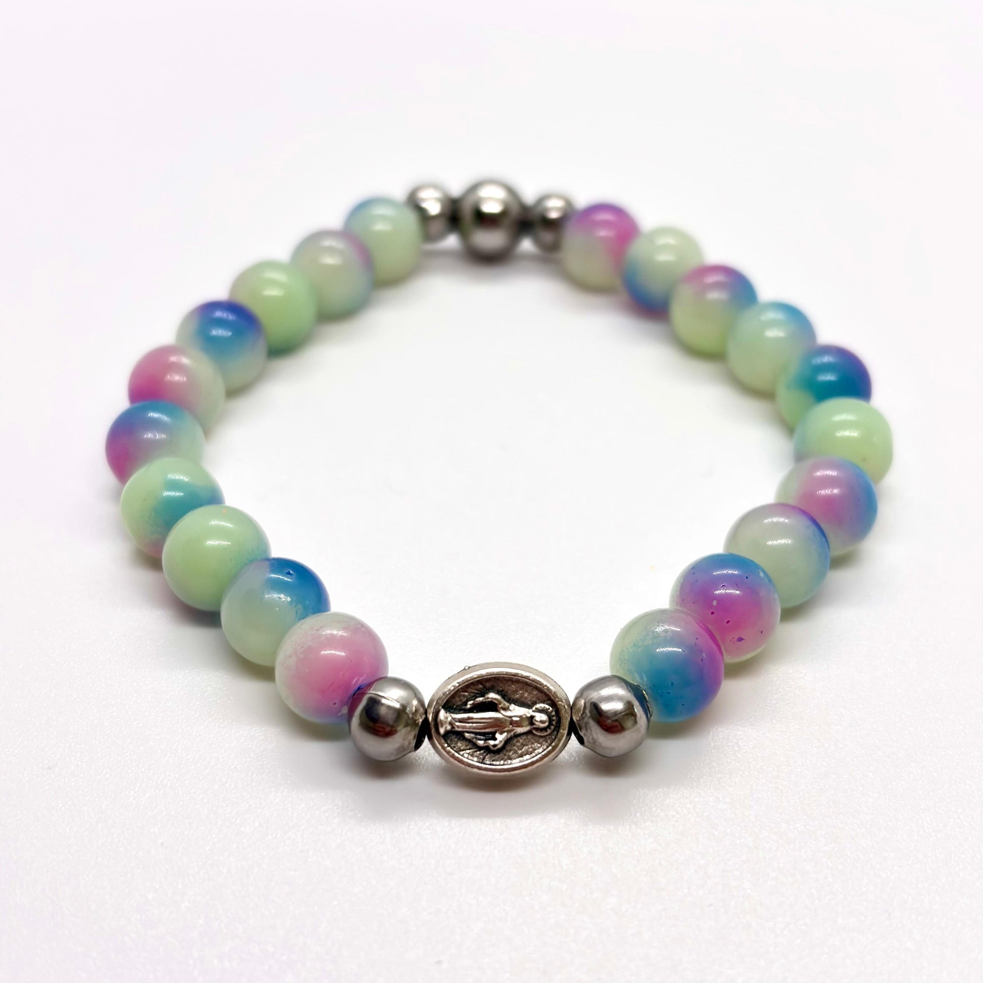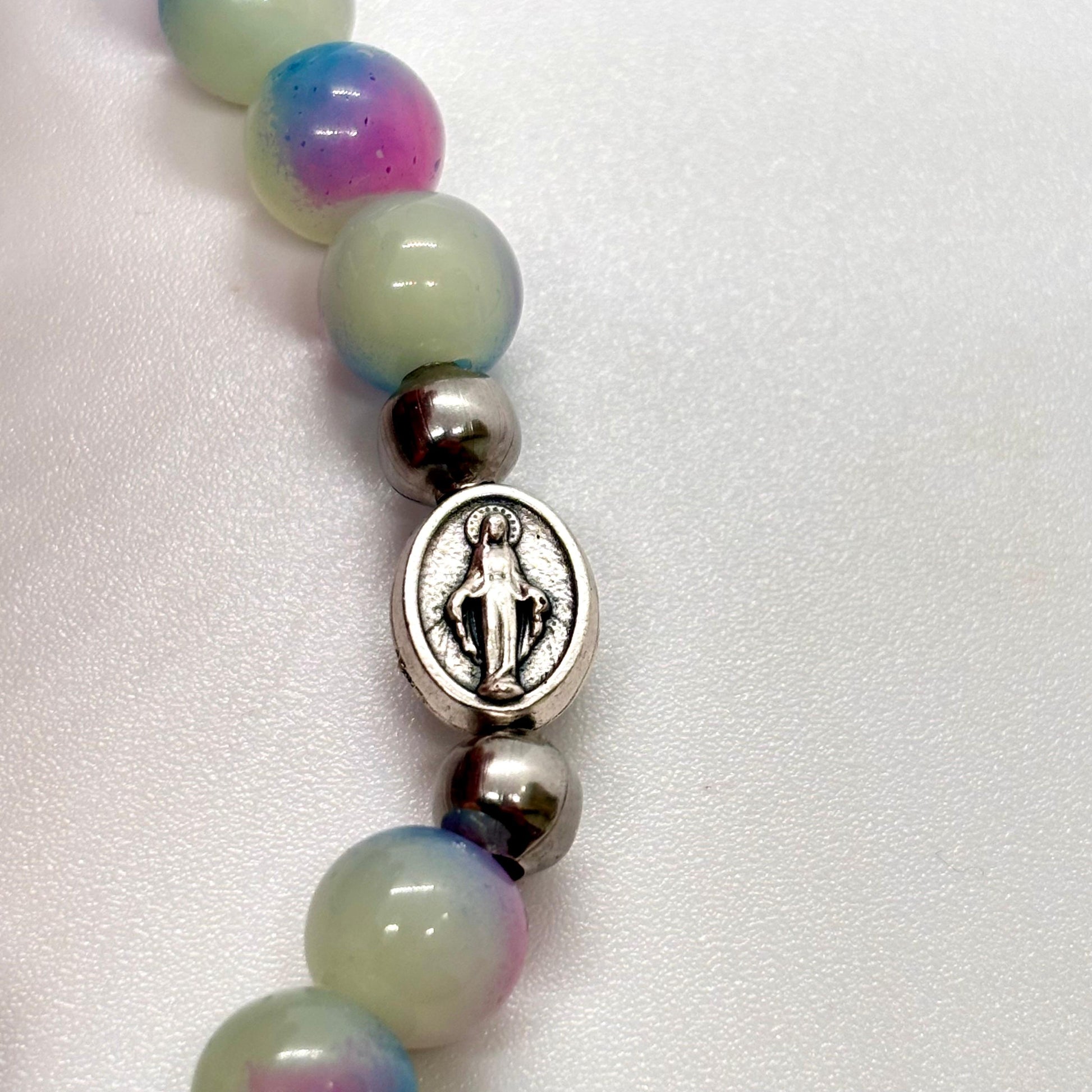 Bracciale Artigianale con Grani in pietra con medaglia Madonna Miracolosa