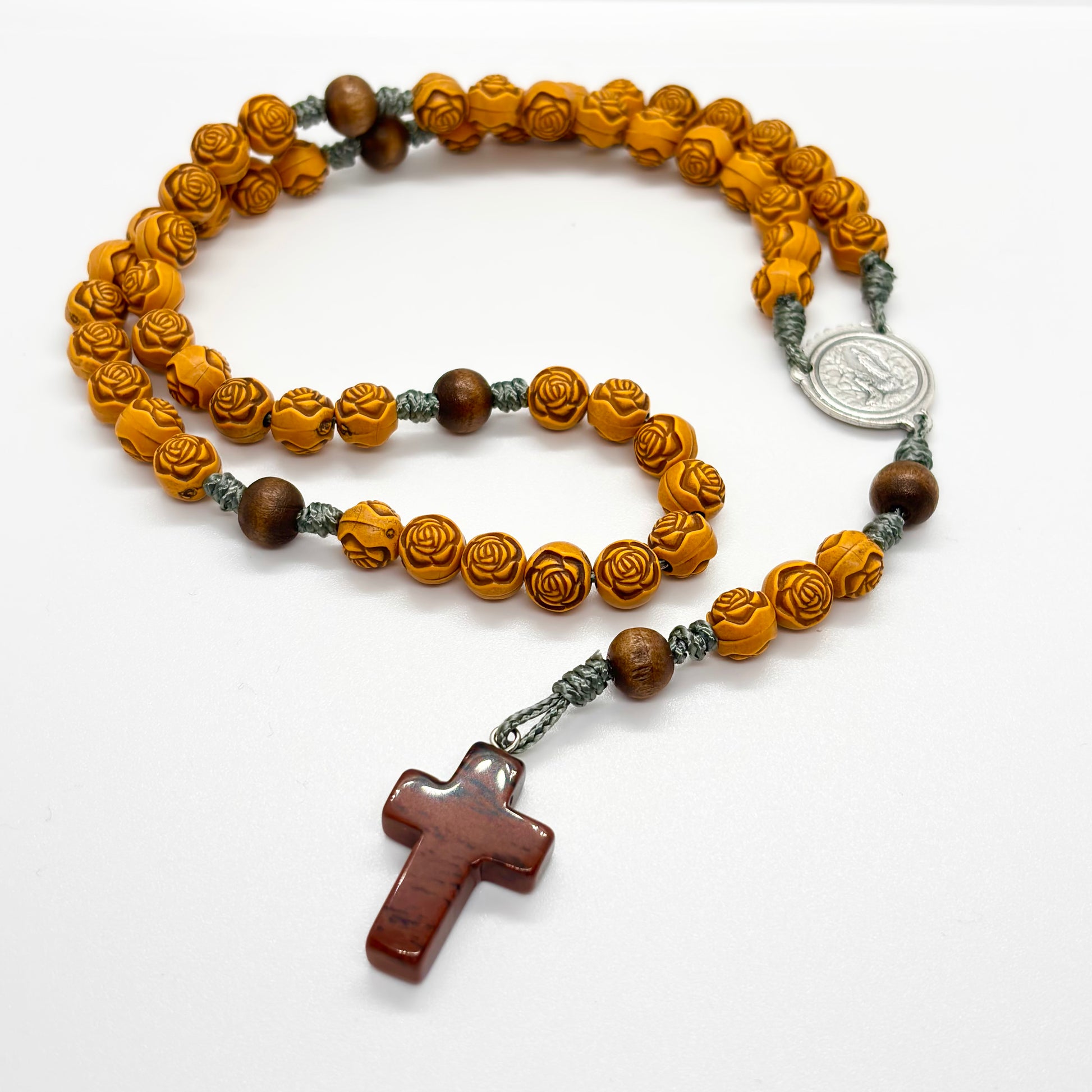 Rosario in corda - Croce in pietra anturale - Madonna di Lourdes