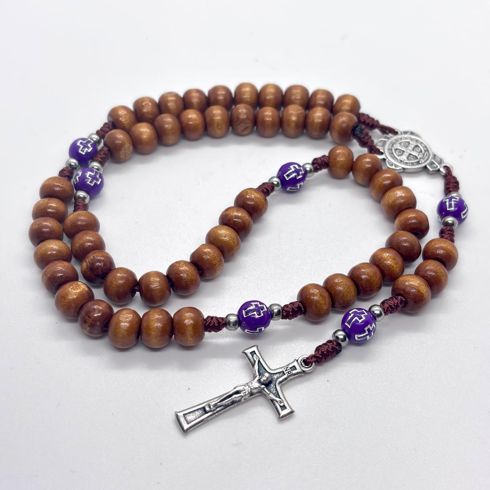 Rosario realizzato a mano con cura artigianale, dedicato a San Benedetto, potente simbolo di protezione, fede e lotta contro il male.
